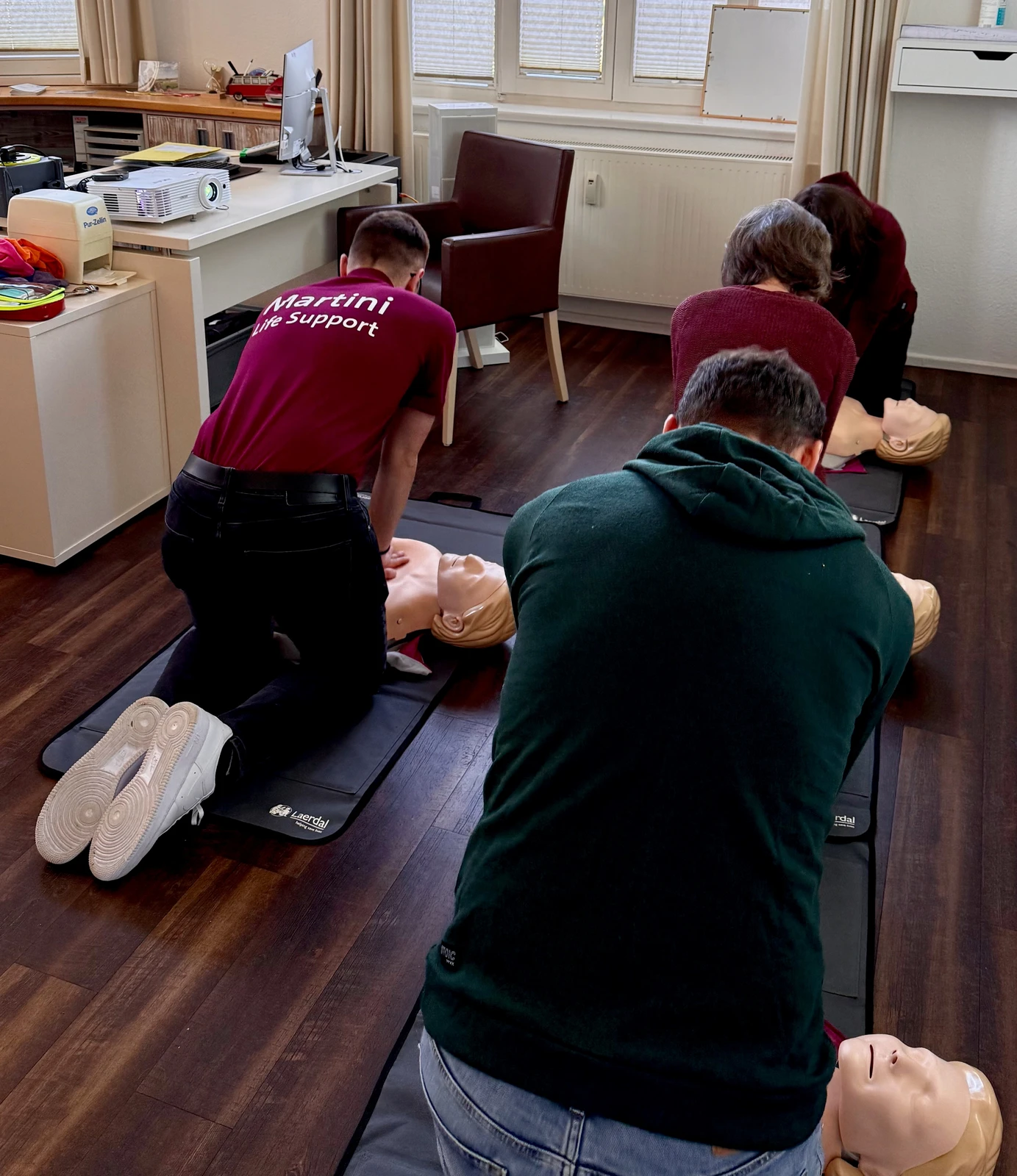 Heute fand in unserer Hausarztpraxis eine umfassende Notfall- und Erste-Hilfe-Fortbildung für das gesamte Praxisteam statt. Unter fachkundiger Anleitung des Teams vom Martini life support wurden wichtige Maßnahmen bei medizinischen Notfällen trainiert – von der Wiederbelebung über den Einsatz des Defibrillators bis hin zur Versorgung akuter Notfälle im Praxisalltag.